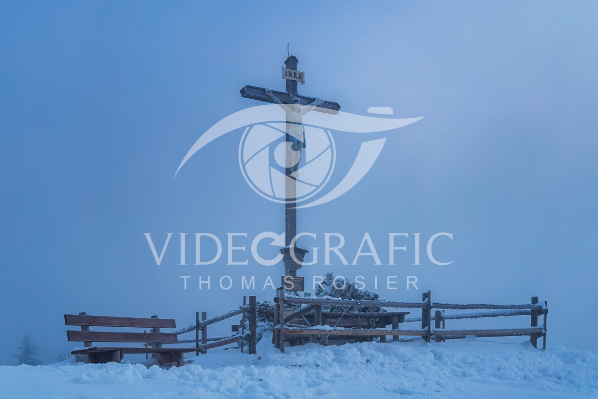 Summit Crosses 1033 (Schwarzenberg, Mangfall Mountain Range - 1187 NN) - photographic equipment: Canon EOS R6m2 | | RF24-105mm F4 L IS USM | 43 mm | Zeitautomatik | ¹⁄₁₀₀ Sek. bei f/4,0 | -0.33 Belichtungswerte | pixel resolution 6000 x 4000 | photographed 2023 by Thomas Rosier (Videografic)