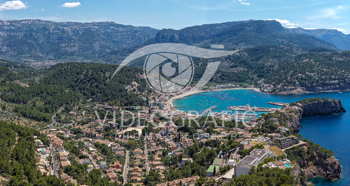 Panoramic Views 143 (Port de Sóller, Mallorca) - photographic equipment: DJI | FC9284 | 70 mm | Manuell | ¹⁄₁₆₀₀ Sek. bei f/2,8 | 0 Belichtungswerte | pixel resolution 18971 x 10068 | GPS Data 39°48'22.9374" N 2°41'50.2997" E, Heigh 300,7 m | photographed 2025 by Thomas Rosier (Videografic)